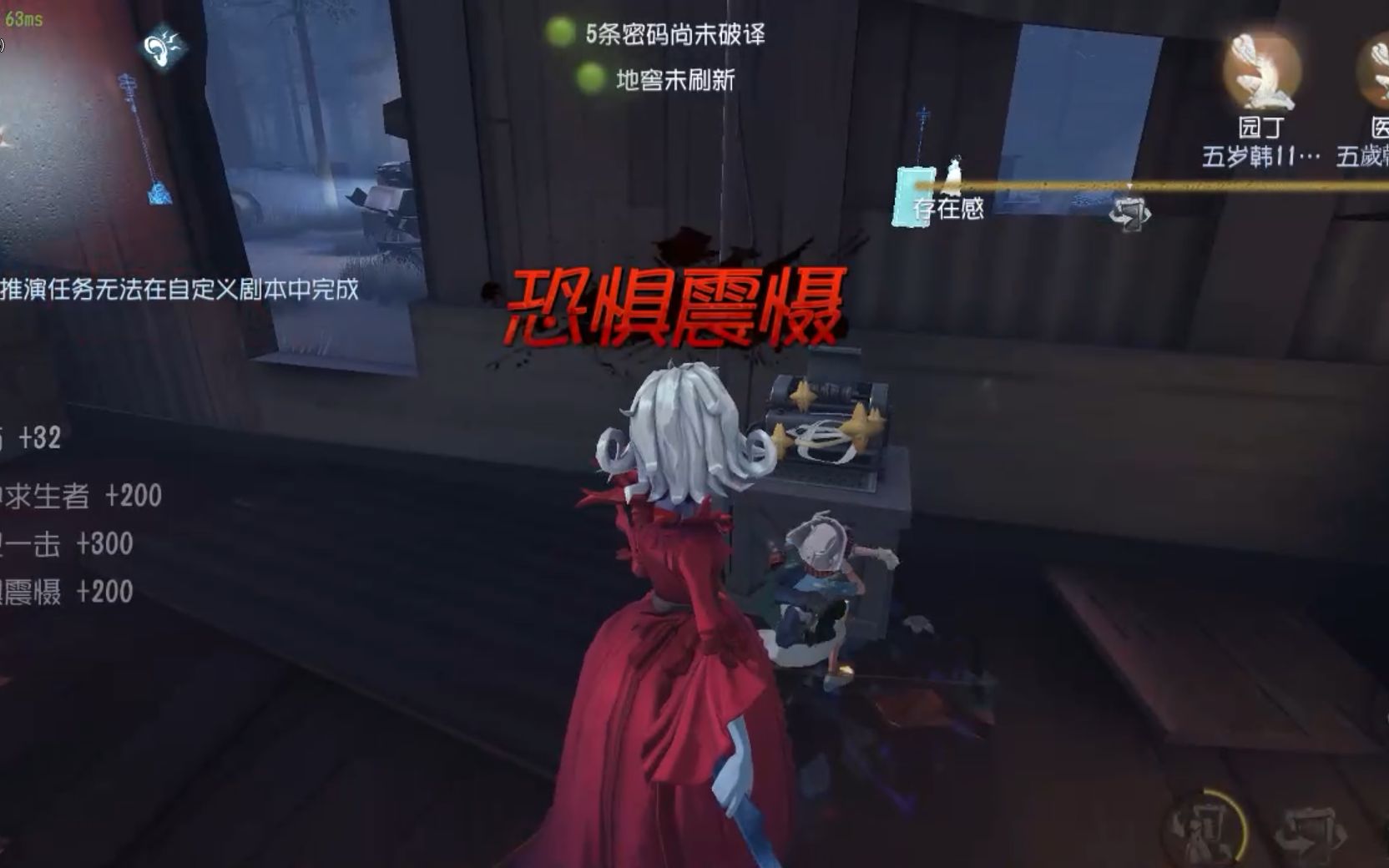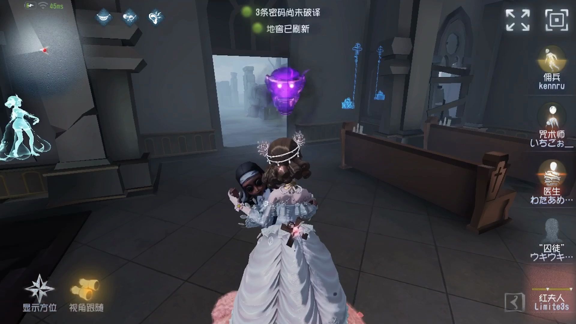 盲女是一位战略性的强力辅助与核心破译专家,其价值在于为团队提供难以替代的信息支援。她的主动技能回声定位分为轻击与重击:轻击可感知小范围内监管者的位置,用于自身规避;重击则能瞬间将监管者的实时位置以轮廓形式在全图范围内暴露给所有队友,并同时显示已被破译过的密码机位置。这一全图透视能力是游戏中最强大的信息技能之一,能有效瓦解监管者的潜伏偷袭,让队友提前规划行动路线,其战略意义远超个人牵制。一个熟练的盲女玩家,其首要职责并非与监管者周旋,而是利用信息差引导团队整体行动,并高效完成密码机破译。